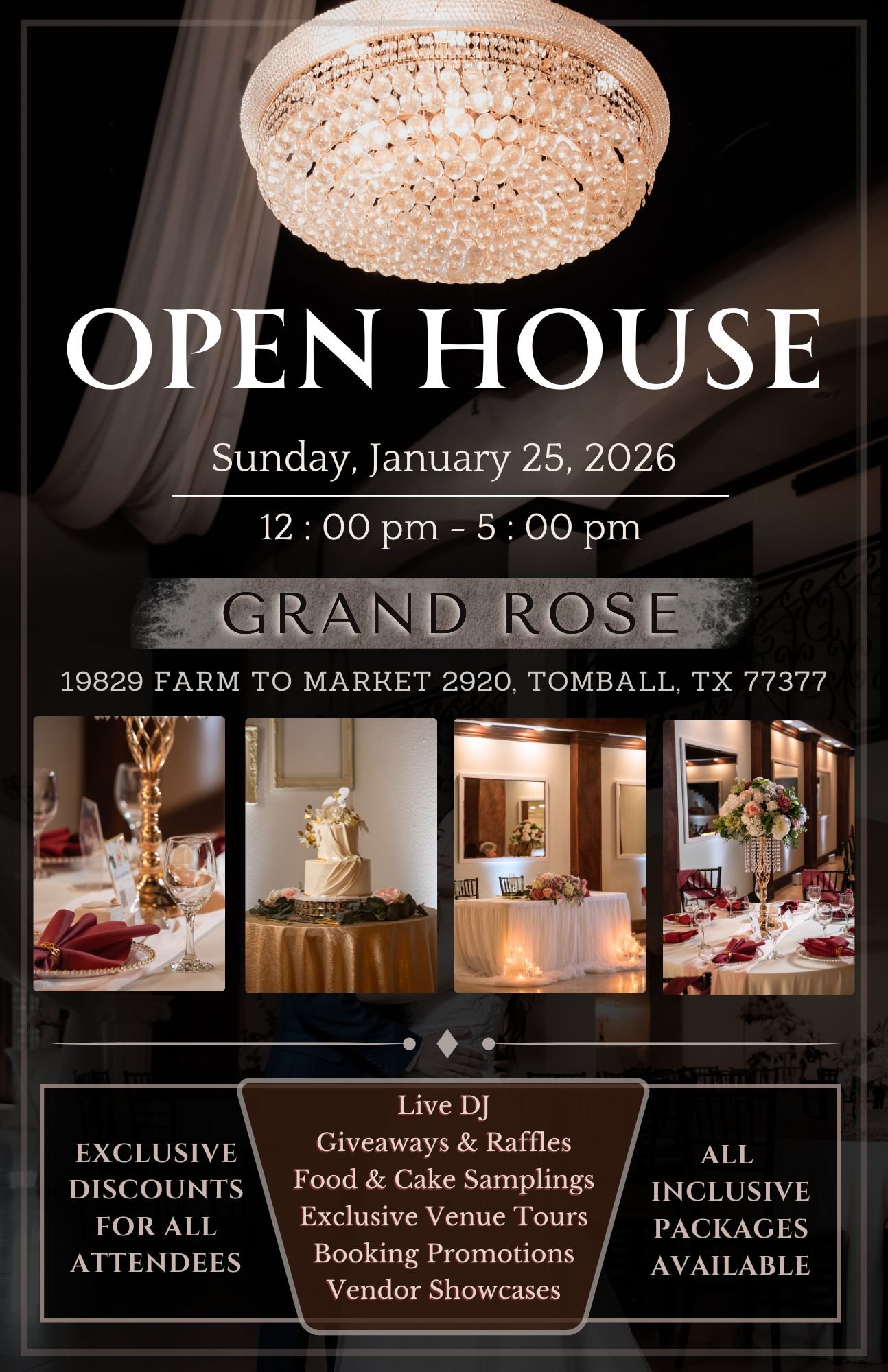 Welcome to Grand Rose, where we specialize in creating unforgettable experiences for weddings, quinceañeras, corporate events, and other special occasions. Situated in the vibrant heart of Tomball, Grand Rose is renowned for its exceptional service and elegance. Our all-inclusive packages offer a seamless blend of sophistication and value, featuring exquisite ballrooms and stunning décor. Let us handle the details so you can enjoy a flawless celebration that exceeds your expectations and fits your budget effortlessly.