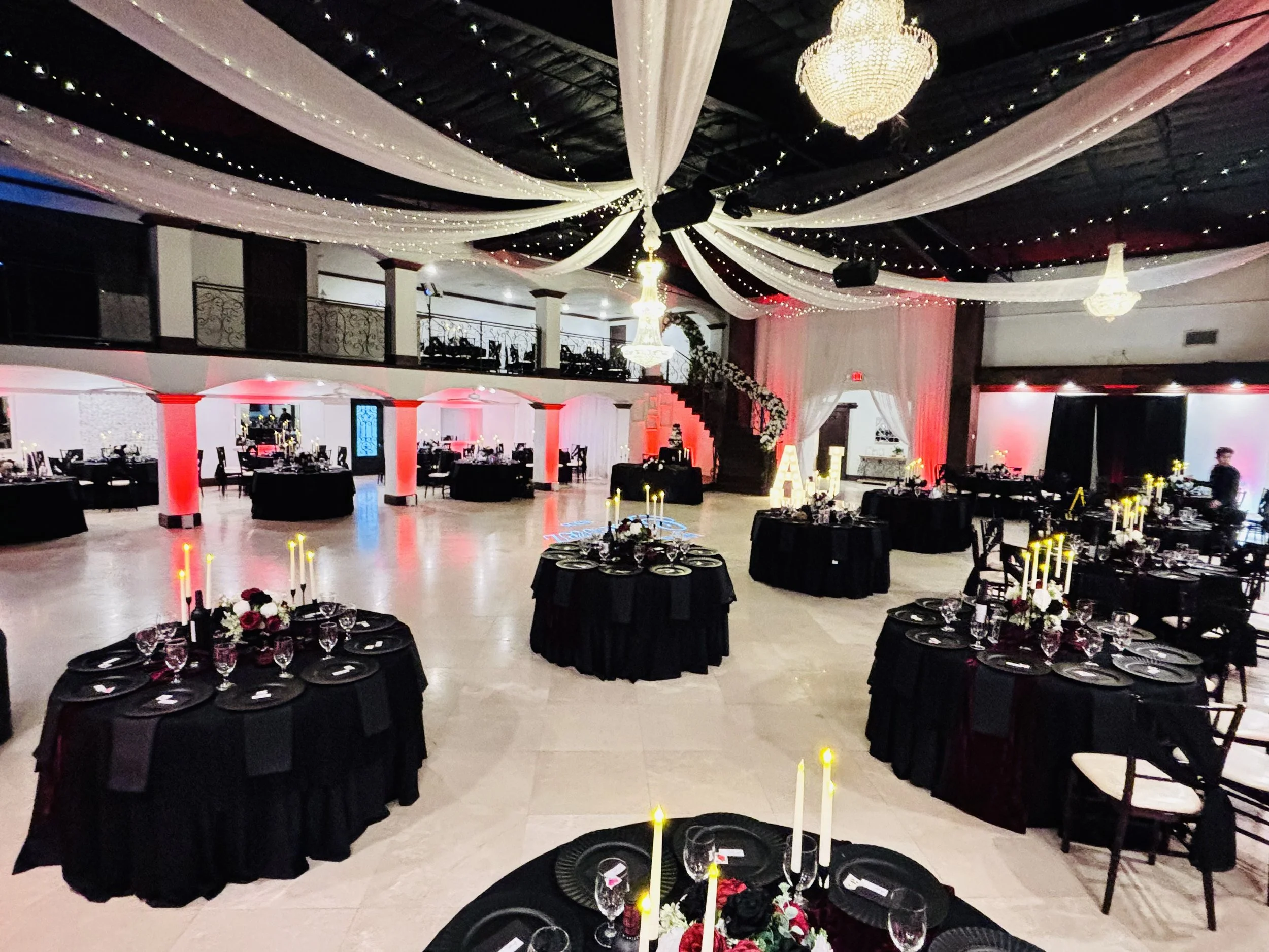 Ascend the grand staircase, a captivating backdrop for unforgettable photographs. The steps lead to an intimate upstairs lounge, where guests can mingle amidst the ambiance and extend the celebration's warmth.